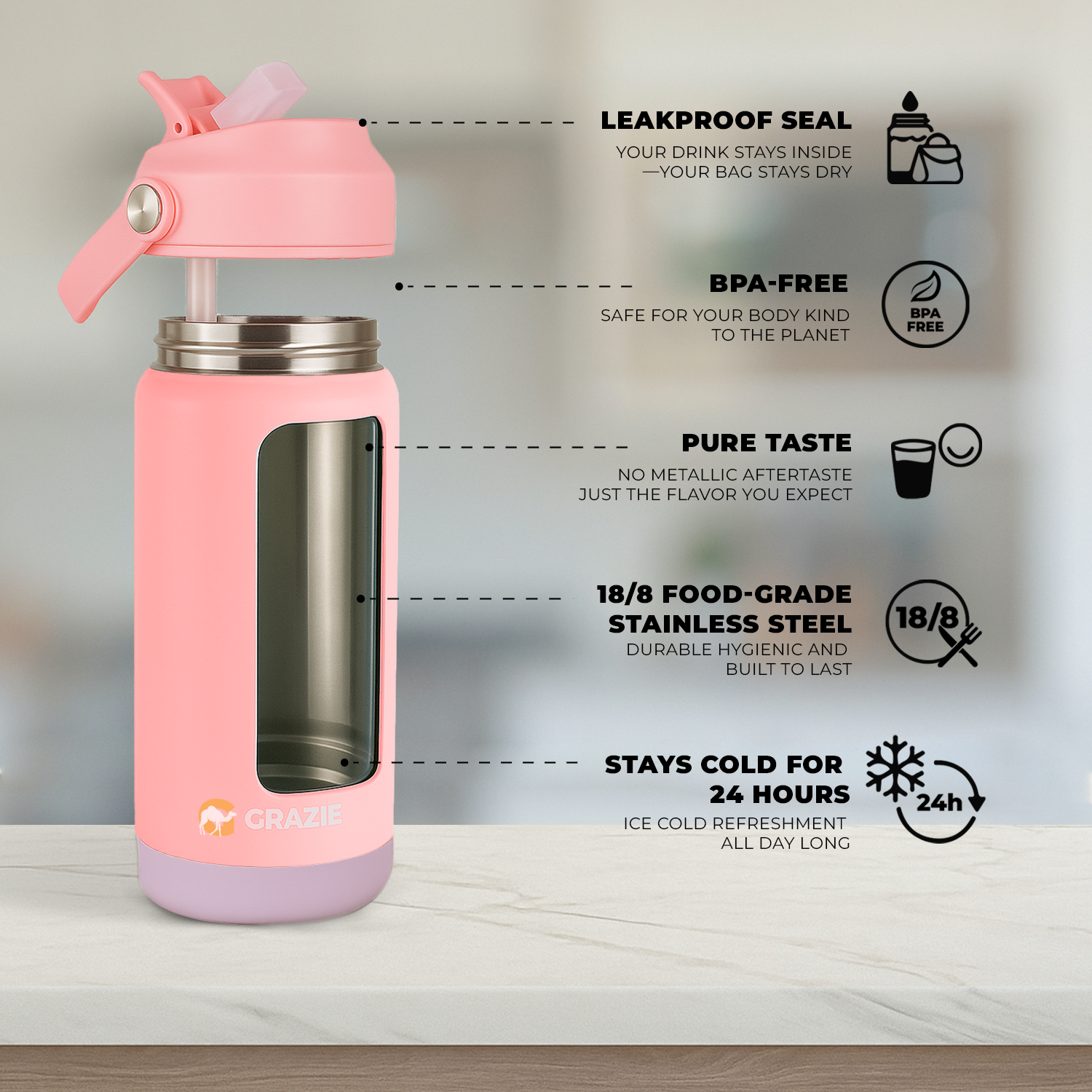 - Double-Layer Insulation: Designed with advanced double-wall vacuum insulation, this bottle keeps drinks hot for up to 12 hours or cold for a full 24 hours, making it perfect for school, travel, or outdoor adventures while maintaining the ideal temperature all day long.
