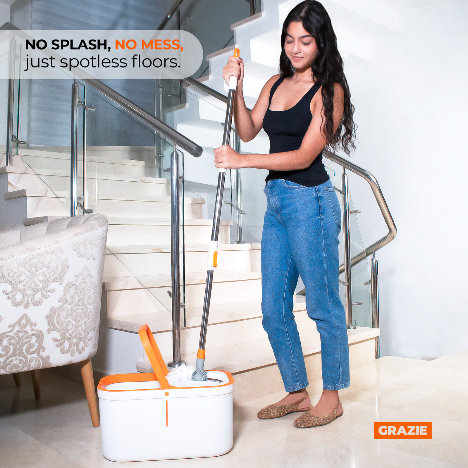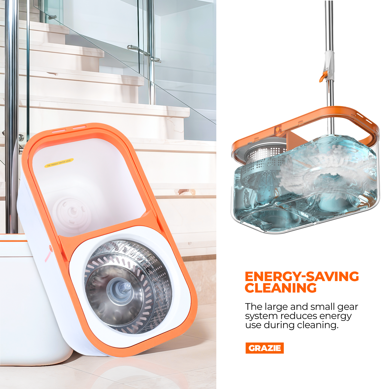 GRAZIE Spin Mop and Bucket with Wringer – 360°